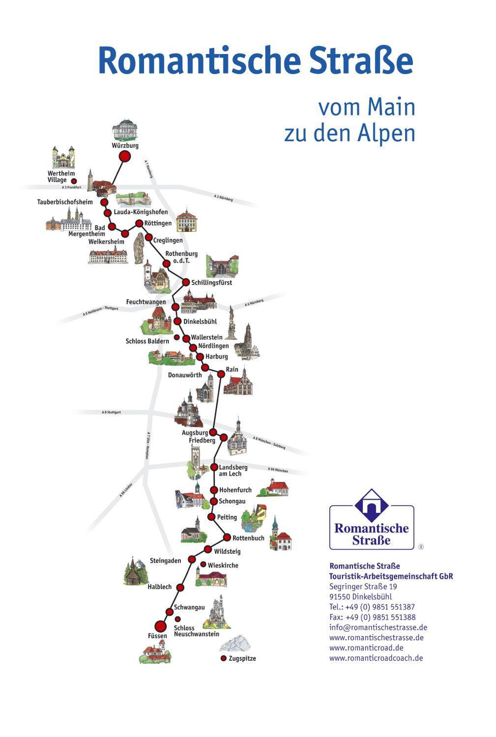 Romantické dálnice Německo mapa. Romantická cesta Německa mapy Západní Evropy (Evropa) tisknout. Romantická cesta Německa mapy Západní Evropy (Evropa) ke stažení.